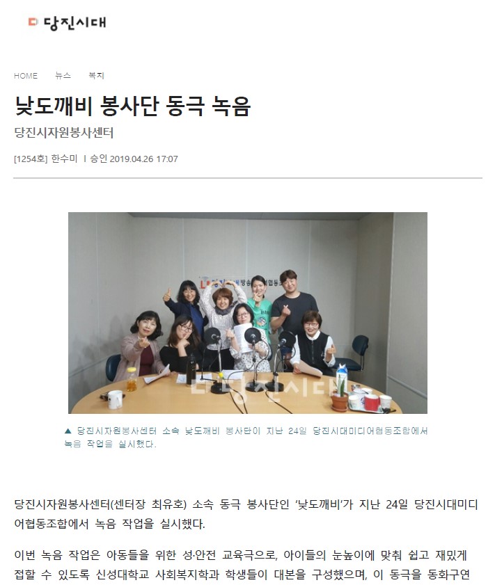 [´çÁø½Ã´ë 2019.04.26] ´çÁø½ÃÀÚ¿øºÀ»ç¼¾ÅÍ, ³·µµ±úºñ ºÀ»ç´Ü µ¿±Ø ³ìÀ½